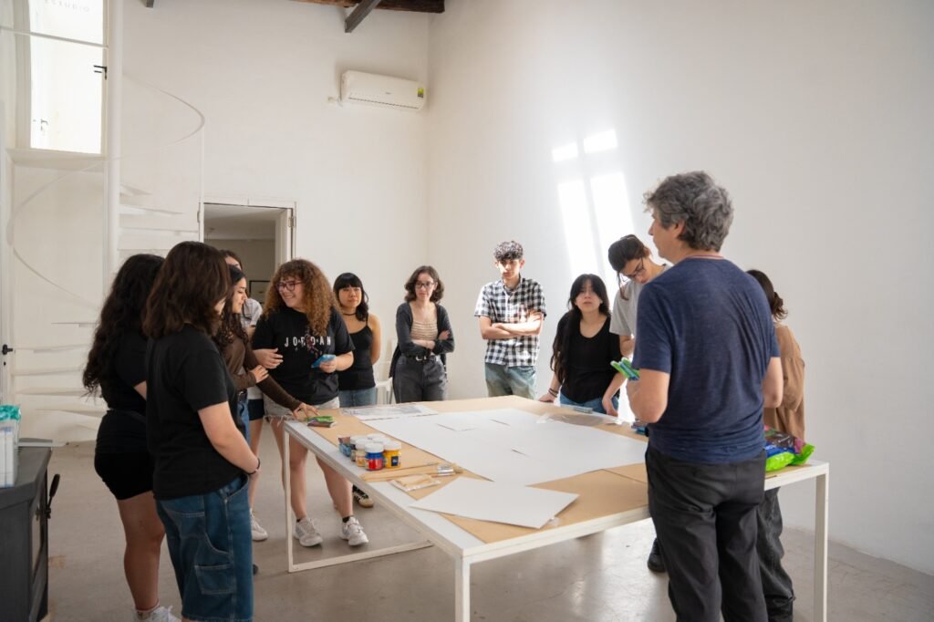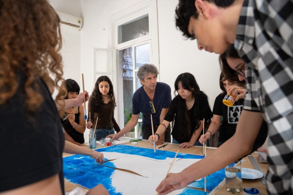 En cada encuentro, los estudiantes se acercan al pensamiento y la obra de Nicolás García Uriburu como un punto de partida para mirar el mundo de otra manera. Las clínicas con artistas, las visitas al Taller y las experiencias en la Reserva El Potrero permiten que esa reflexión tome forma: en materiales, en procesos, en preguntas que vuelven una y otra vez sobre lo mismo —¿cómo se cuida aquello que nos sostiene?, ¿qué vínculos necesitamos reconstruir?, ¿qué futuros somos capaces de imaginar?—